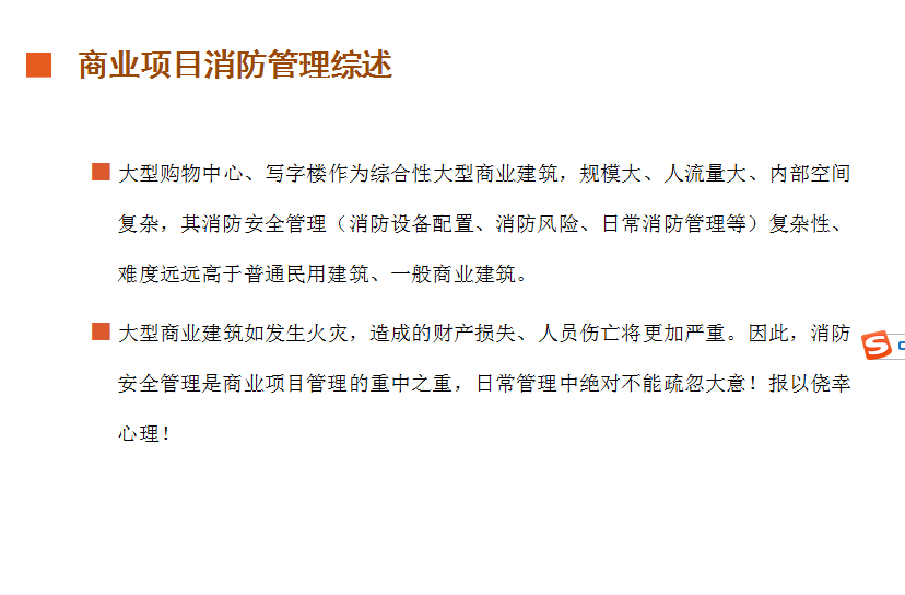 2.结果,昨天写头条文章时搜索资料库,发现了一个商业物业项目消防管理知识PPT,内容符合这个朋友的需要,今天就发出来,希望能帮到这位朋友。