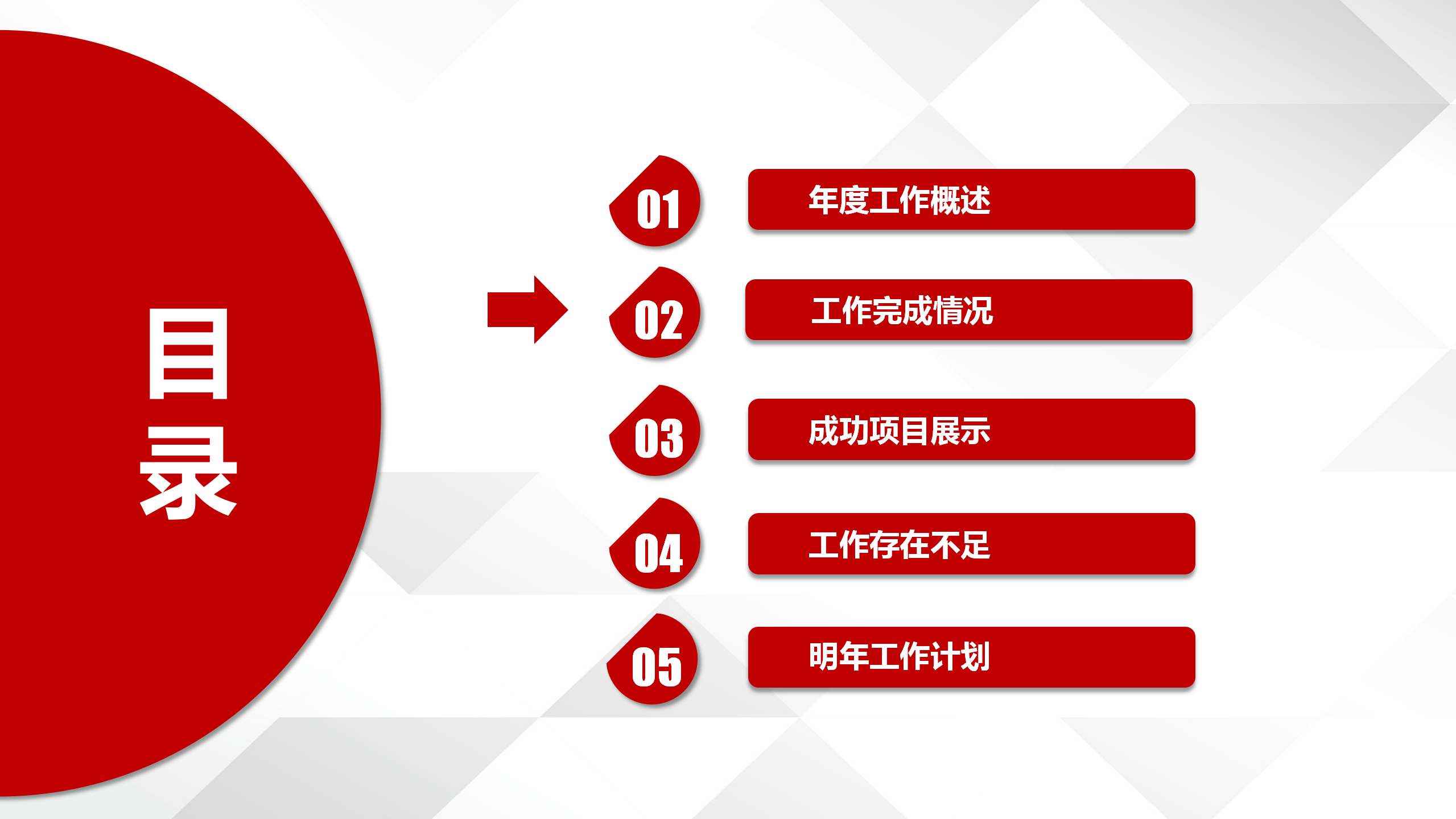 2.此PPT仅为模板,可适用于工作总结,工作述职,工作简介等各类汇报,大红色给人一种喜庆的感觉,同时增加视觉冲击力,适用于年中汇报等。