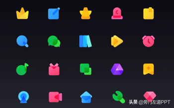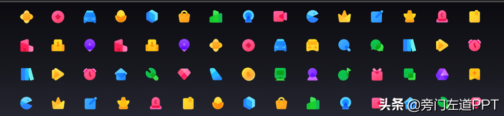 整份PPT的调子都属于深色简约,看完后,被很多人记住的一页,是图标的排列: