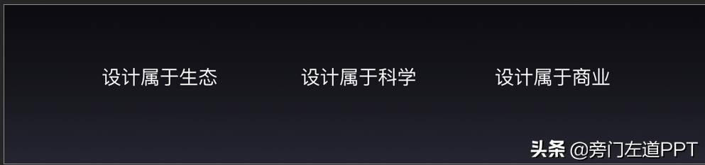整份PPT以深色作为主调,现场的播放效果超赞,同时此次PPT是超宽屏设计: