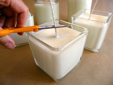 让蜡干几个小时。将从蜡中伸出的灯芯修剪到一英寸高。
