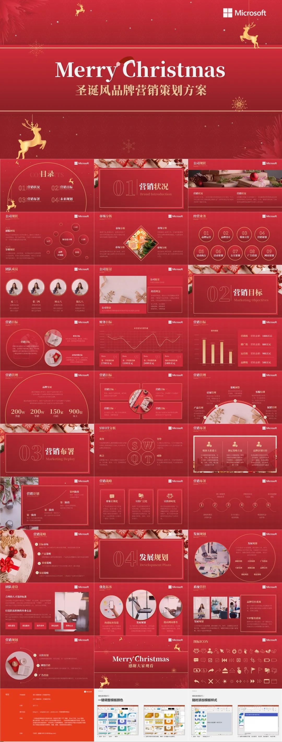 3.部分PPT模板示例如下:圣诞风品牌营销策划ppt模板圣诞节圣诞祝福贺卡ppt模板这套PPT模板主要是利用雪的元素来突出圣诞主题,通过雪人、雪花,积雪的元素穿插于各个页面之间,使得整个PPT模板非常的连贯而且一致