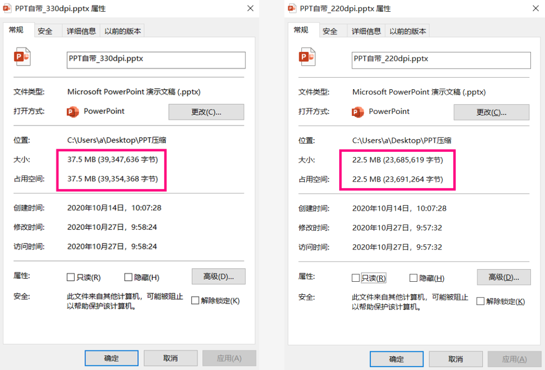 330dpi和220dpi的压缩效果,分别压缩到了37.5M和22.5M,基本已经能满足我们的需求了。