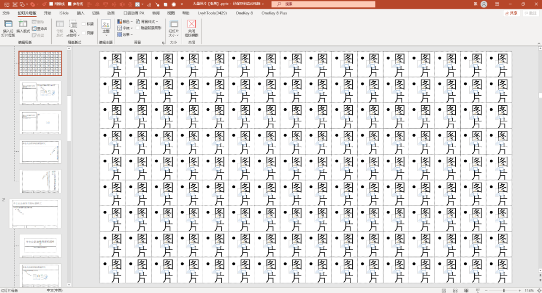 6.关键步骤如下:1、运用紧邻矩形组合均分页面,在母版视图当中,制作铺满页面的图片占位符。
