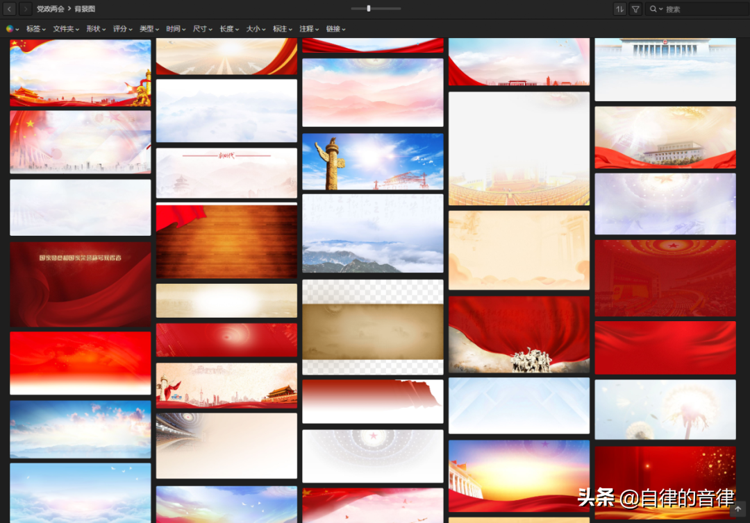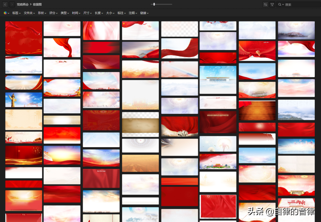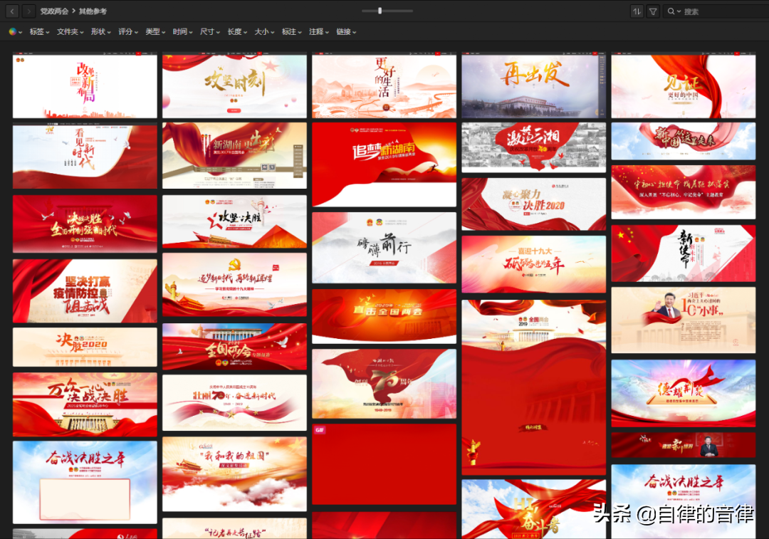 我自己收集的党政风设计参考和素材,也一并整理好了,如果喜欢有需要的话,可以关注头条号@自律的音律 私信回复关键词【党政】下载哈。
