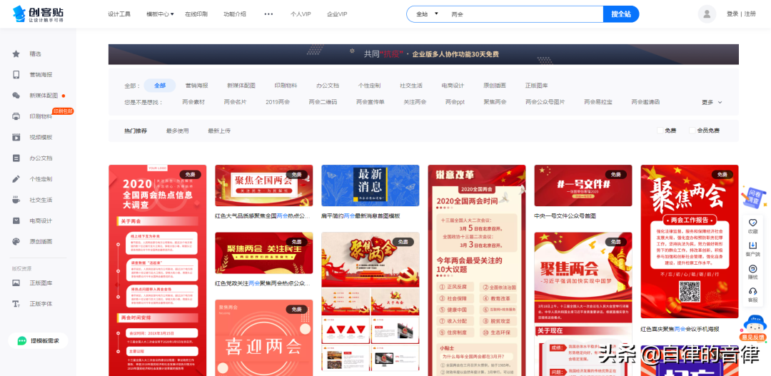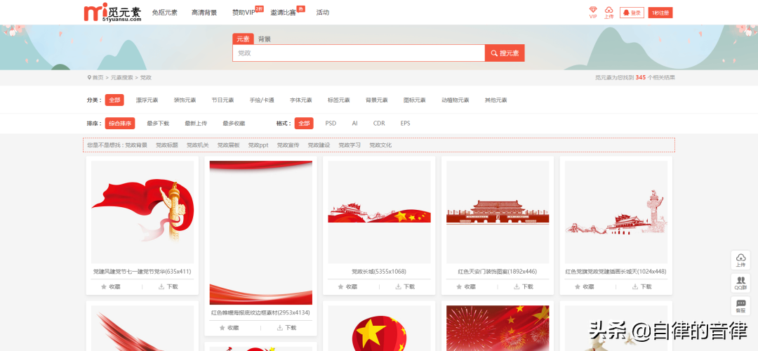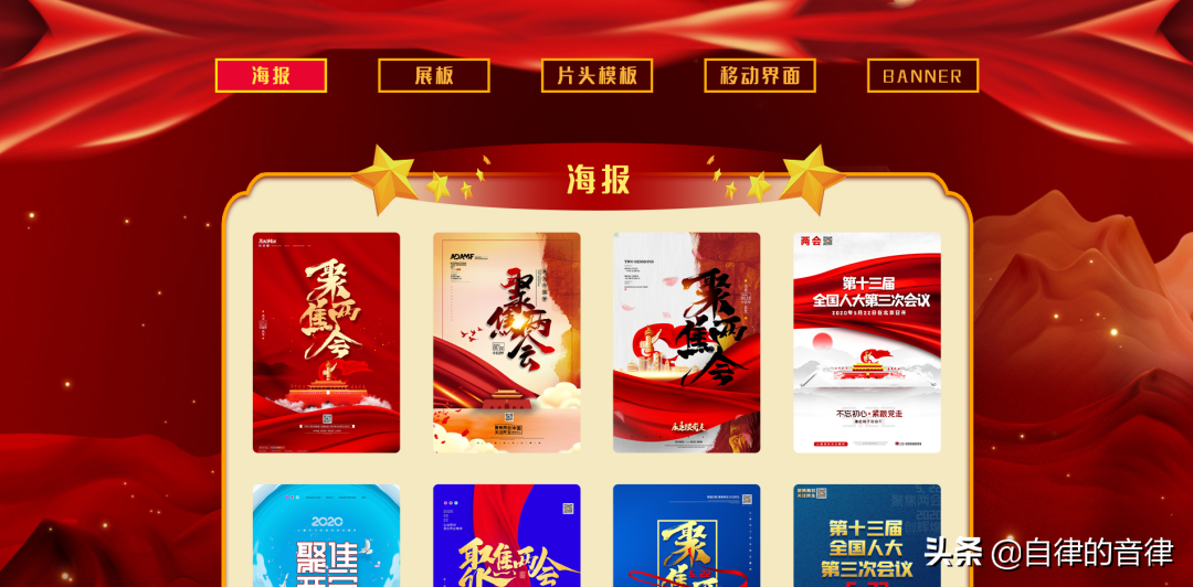 看过上文就知道,我们在素材站点搜索海报、展板,也可以获取党政风的素材。