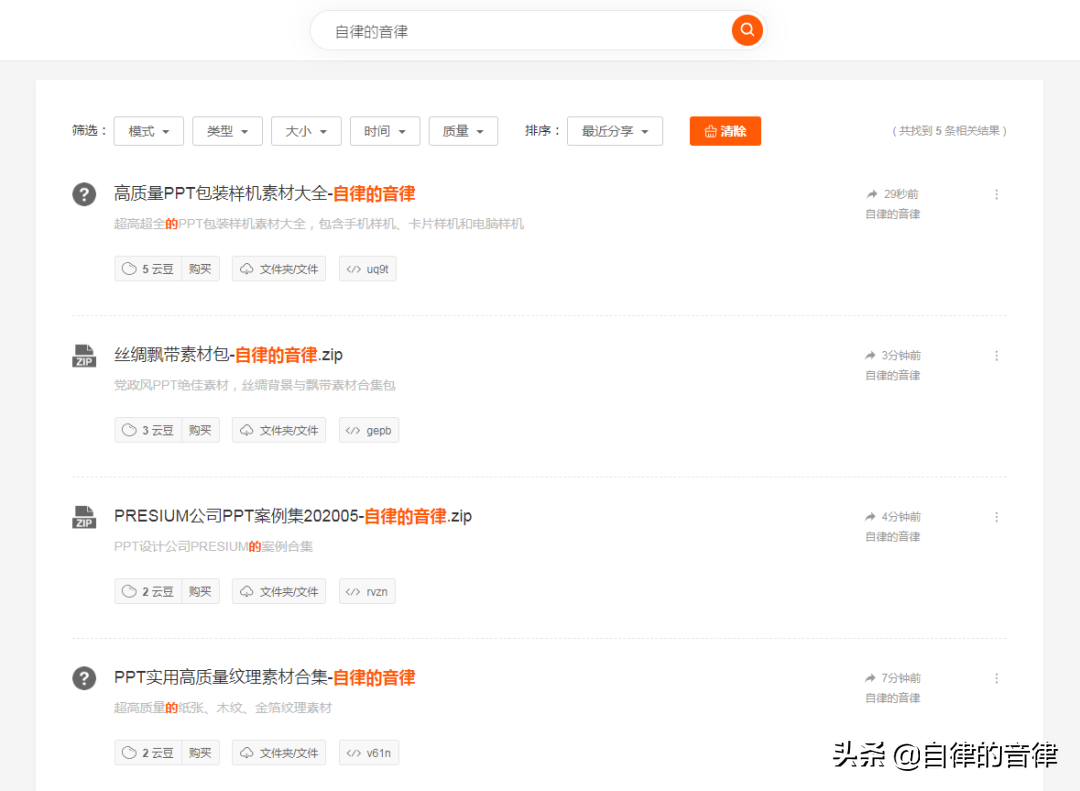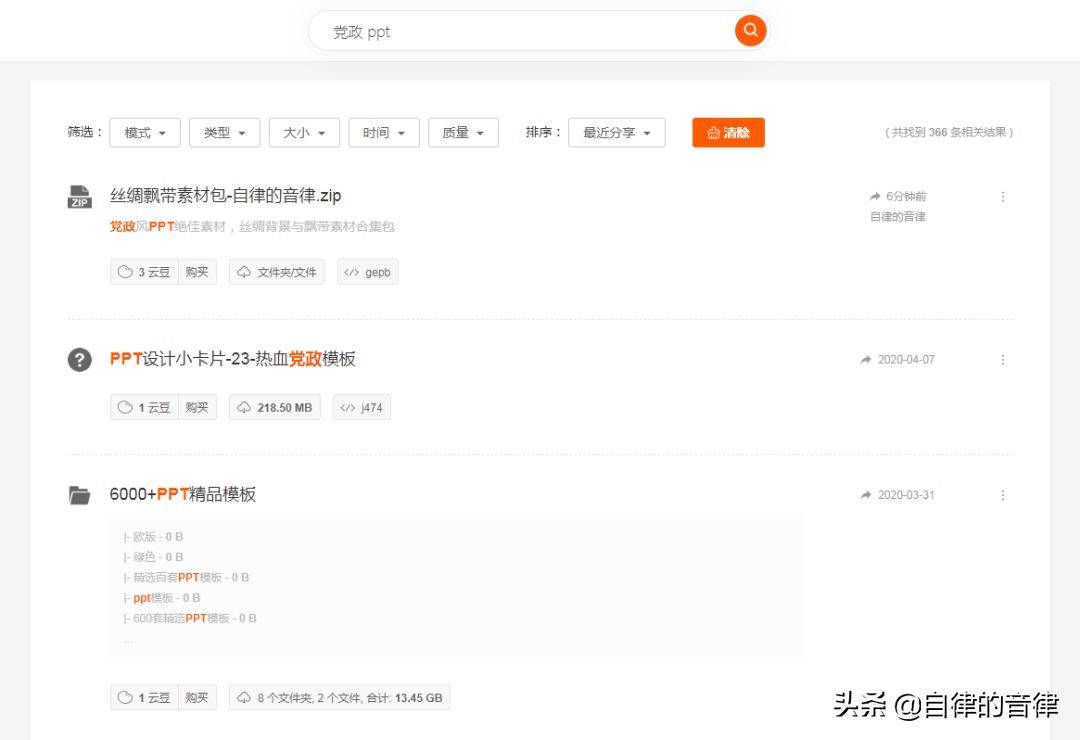 举个例子,使用云盘精灵工具,搜索我分享的 PPT 相关的素材资源: