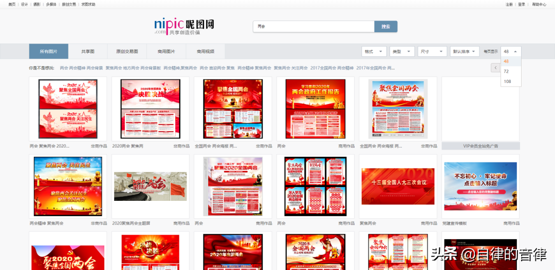 简单举个例子,在昵图网,搜索关键词“两会”