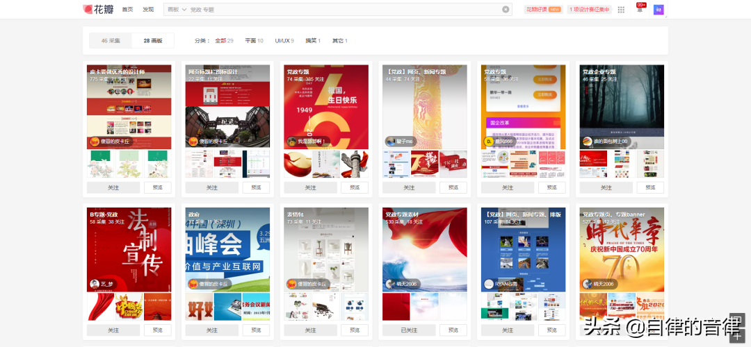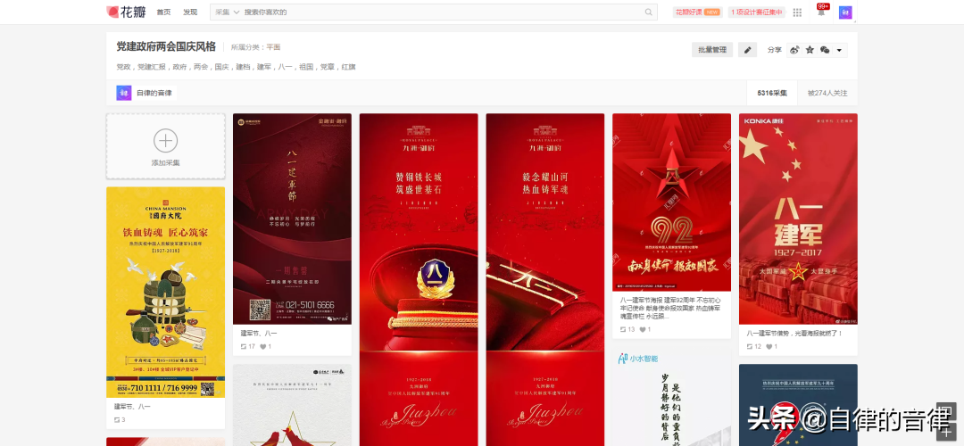 我在花瓣网就专门收集了一个画板,绝大多数的党政作品,都是地产海报。