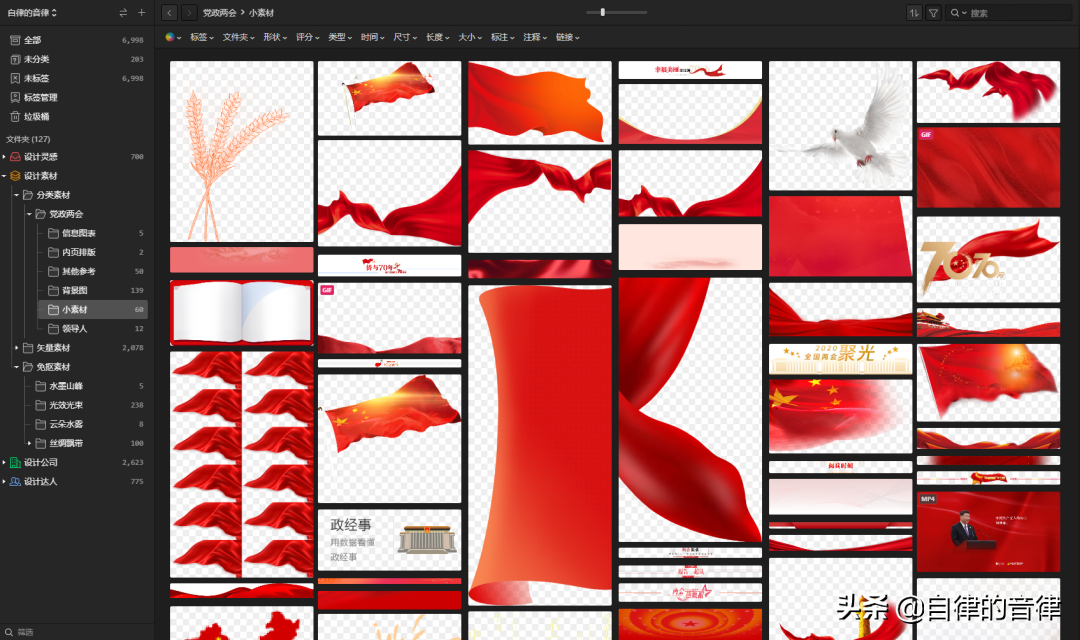 我就把这些党政风的参考与素材,整理到 Eagle 中,并简单分类了一下。