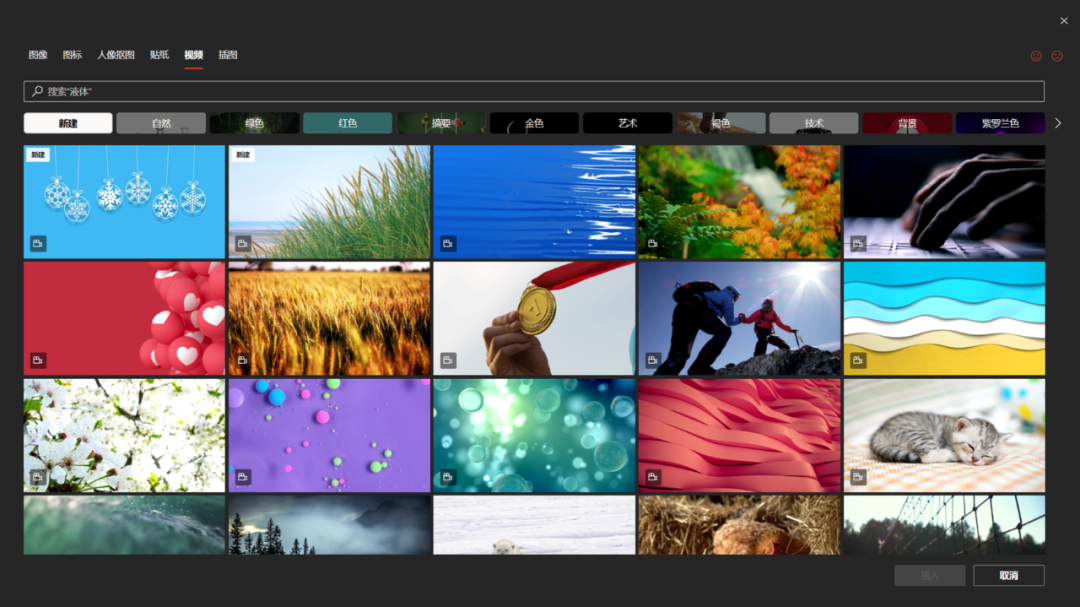 上面提到的这些优质视频,都可以在PPT自带视频库中免费下载。