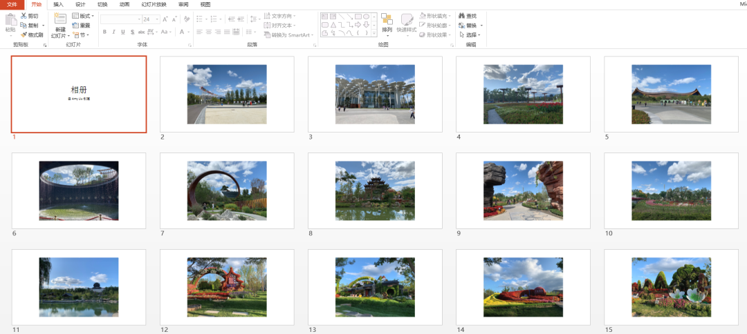 总结:PPT自带【相册】功能,很容易生成相册,不过在美化,设置动画、切换效果 、添加背景音乐方面需要多花一些心思来设计。这里只是为大家抛砖引玉,让大家了解在PPT中制作相册的过程。PPT中各种动画以及切换效果,大家可以多尝试,自行发挥,做出更加炫的相册效果。在动手制作相册的过程中还可将软件运用的更加熟练。