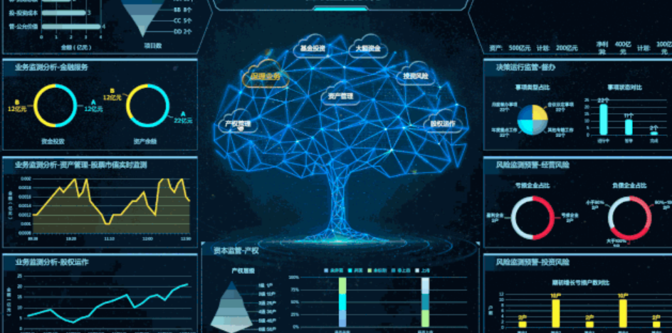 4.那到年底了,还有别的方法做出有科技感的可视化大屏吗?其实不难,用FineReport步骤就比较简单,生成的可视化还能用到PPT里做汇报。