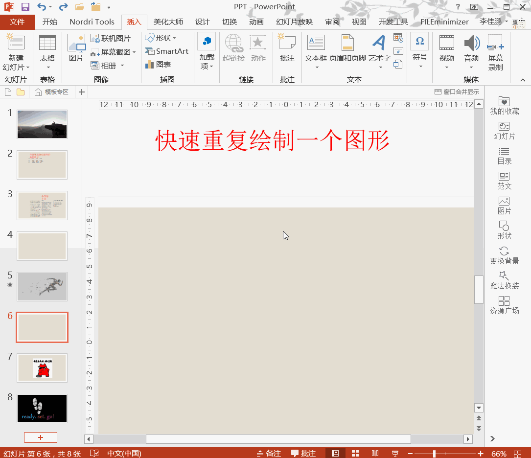 插入——形状——选择一图形——右键锁定绘图模式——可连续绘制——按ESC退出绘制