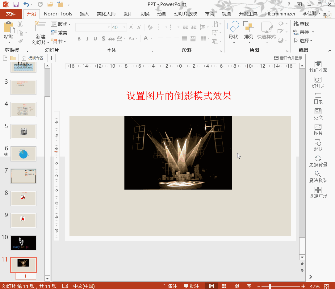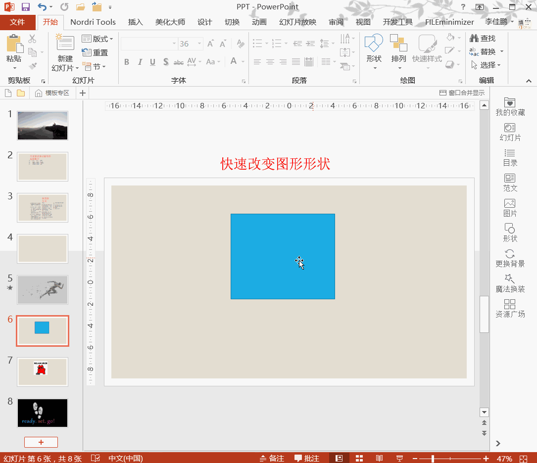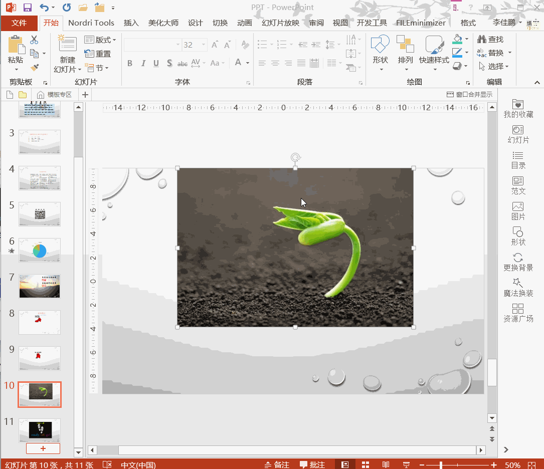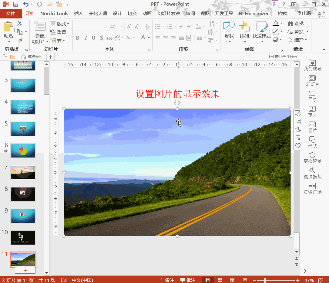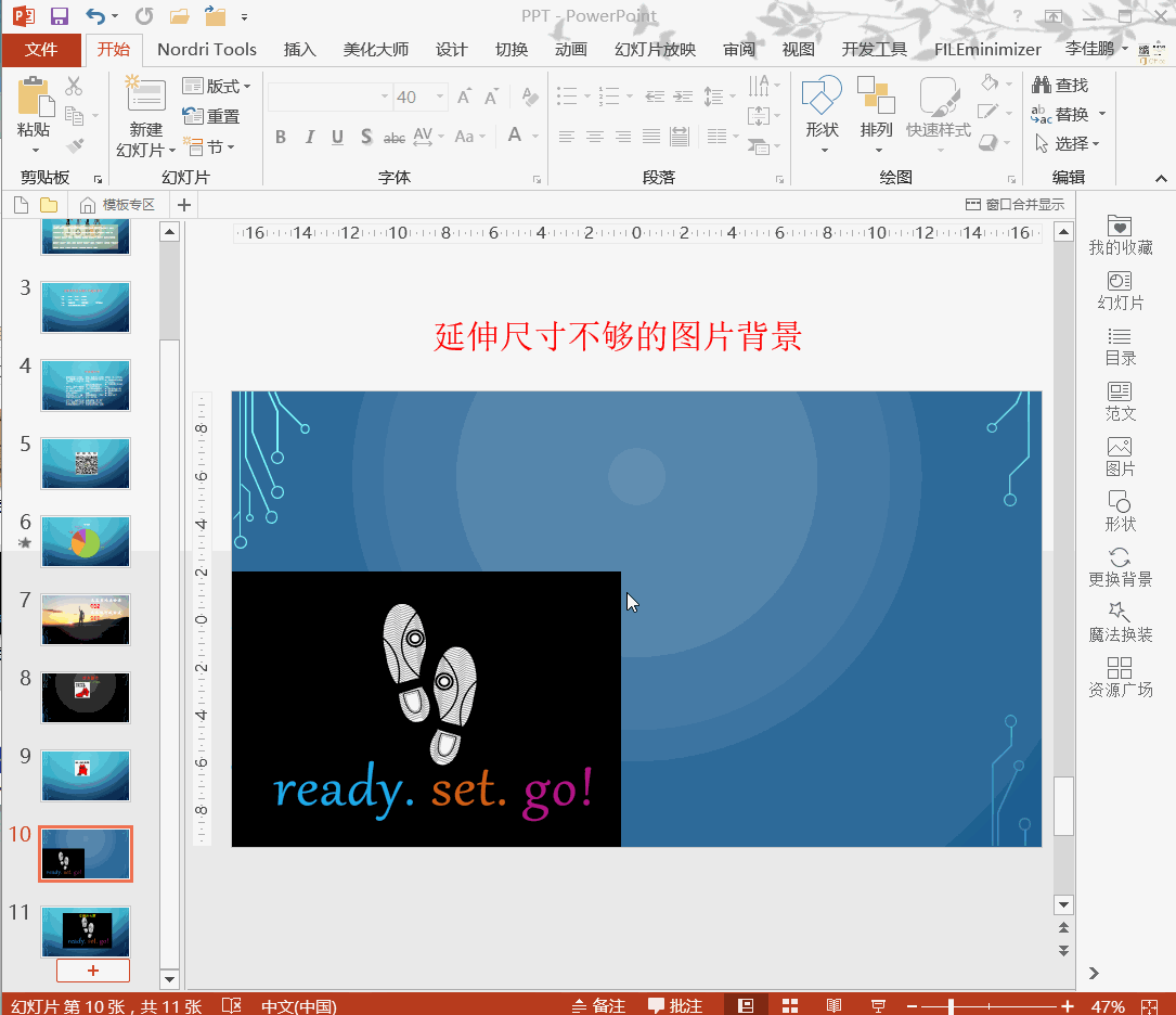 当插入的图片大小和背景不一致时,直接拖动顶点改变大小会另图片比例失真。