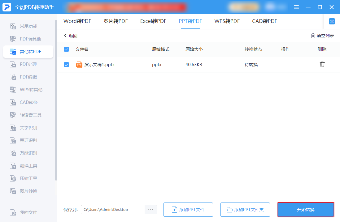 转换方法一:通过“全能PDF转换助手”将PPT转换为PDF