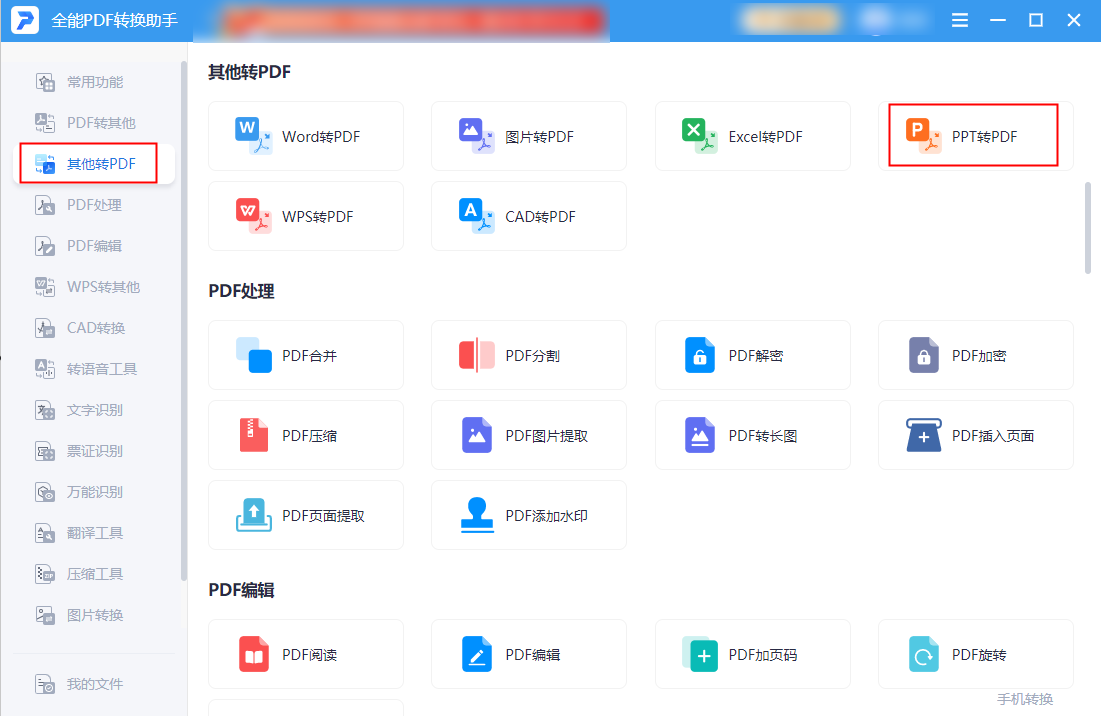 第一步:安装该软件后打开——在左侧工具栏找到“其他转PDF”——“PPT转PDF”。