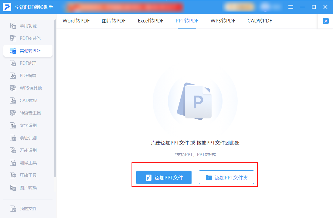 第二步:选择“添加PPT文件”,导入需要转换的PPT。