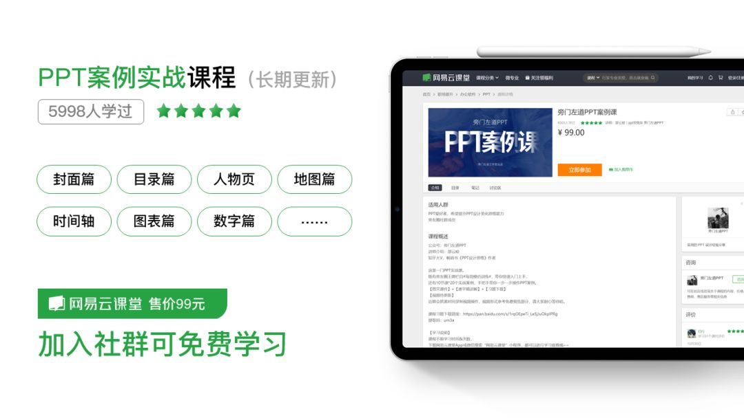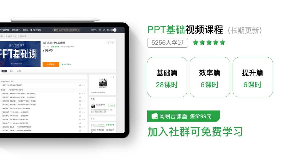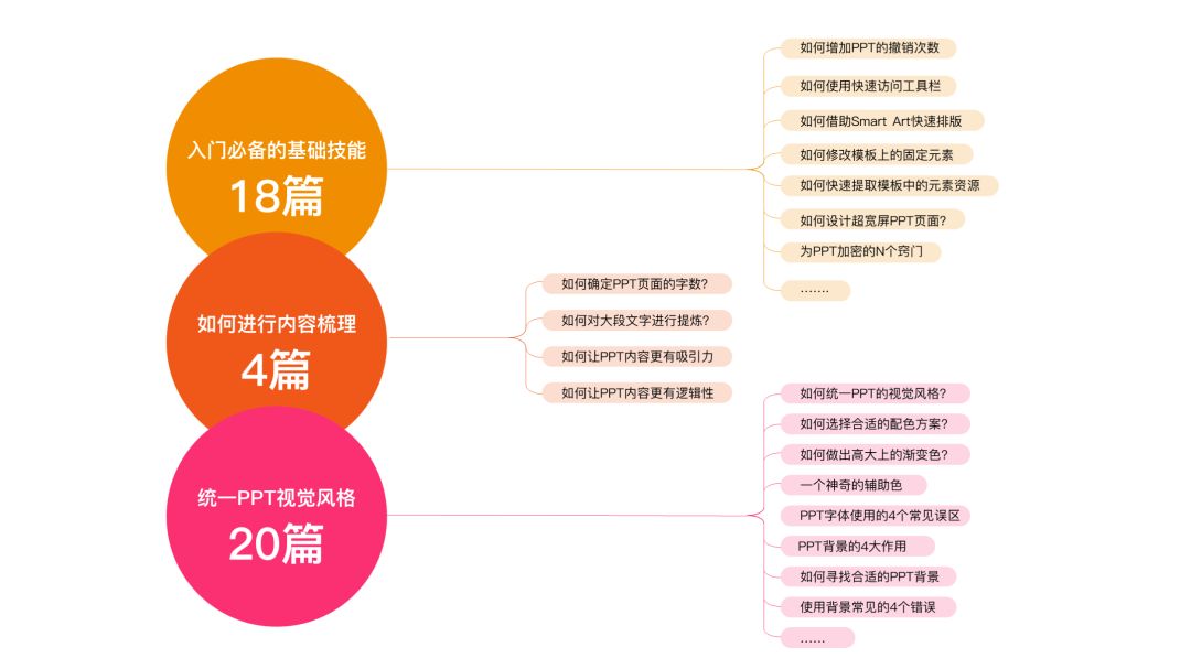 包含PPT基础课,PPT专题讲解以及PPT实战案例课,系统地帮你提升PPT技能。