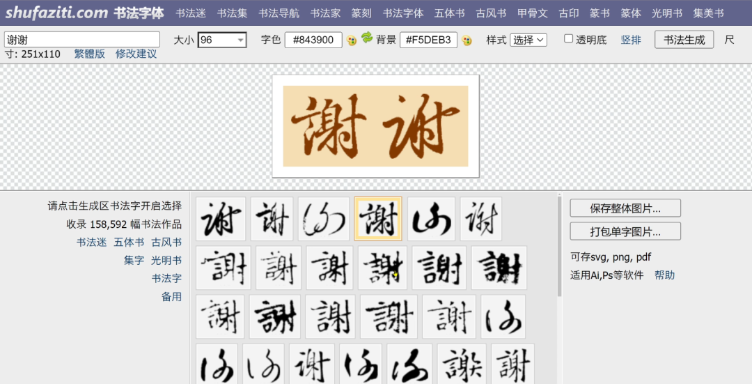 推荐去这个书法网站,让书法家给你写标题,生成后还可以直接下载,并且可以随意更改文字的颜色: