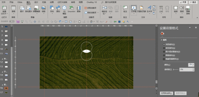 在“合并形状”选项中选择“相交”,之后将这个相交的形状在“设置形状格式”栏中设置属性,
