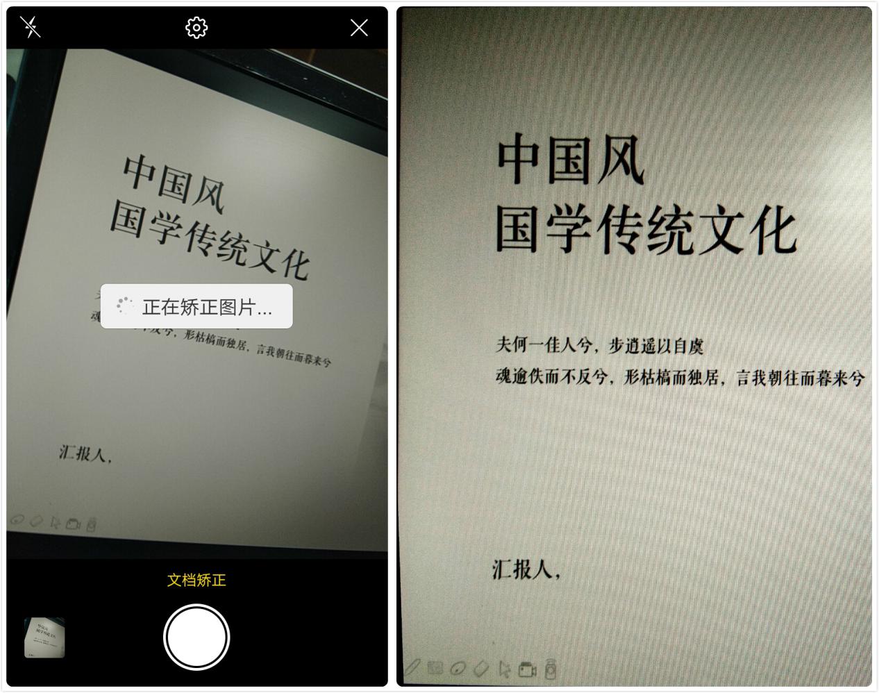 打开手机相机,然后点击选择里面的【文档矫正】功能,接着我们就可以拍下PPT文字内容,如果拍摄的角度有些歪的话,相机也会自动帮我们进行矫正操作。