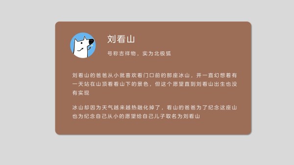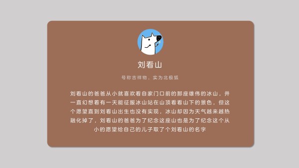 人物简介在幻灯片中出现的场景不多,很多朋友可能对其不是很了解,所以这篇文章就来简述一下在幻灯片制作中常用的几种人物简介格式。通篇以刘看山作为主线人物作为演示: