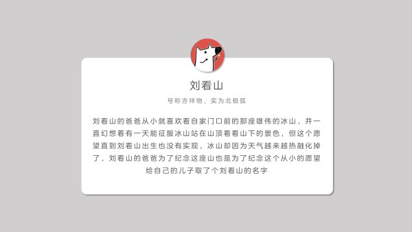 1 头像和主卡片分离开,头像在左侧,主卡片呈现上下结构,头像部分阴影处理