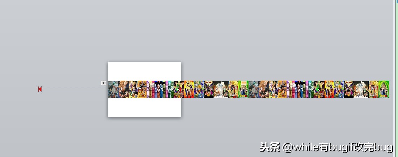 但此时播放动画的时候是会断片的,也就是播放到图片末尾的时候会出现空白的情况,这时候就需要按Ctrl+Shift键,将这组图片复制一组放于右侧对齐,同时将第二个动画效果设置为与“与上一动画同时”,设置好之后再次播放,即得到循环滚动的效果。