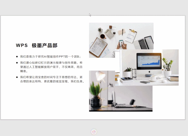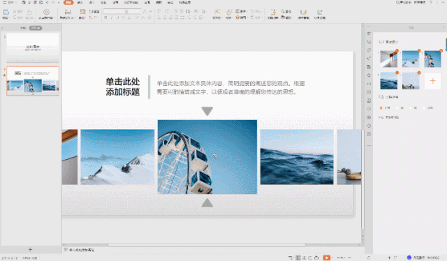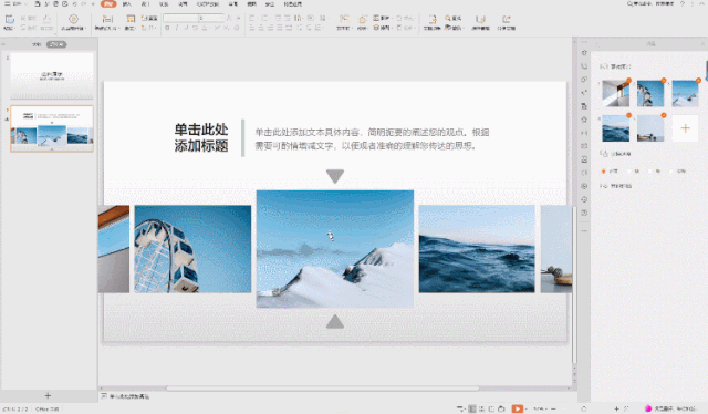 当识别到页面上有三张及以上图片时,除了拼图方案,还能推荐出多图轮播的排版方案,一键套用,轻松拥有炫酷的动画效果。