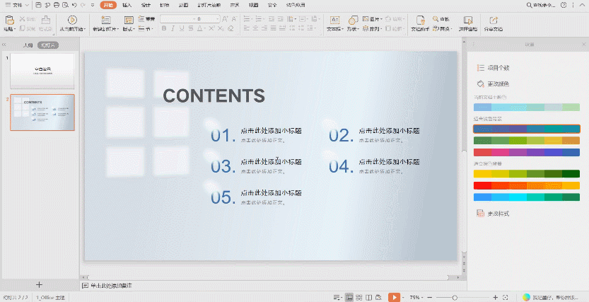 目录页点击右侧【更改颜色】还可以更改颜色以匹配方案风格