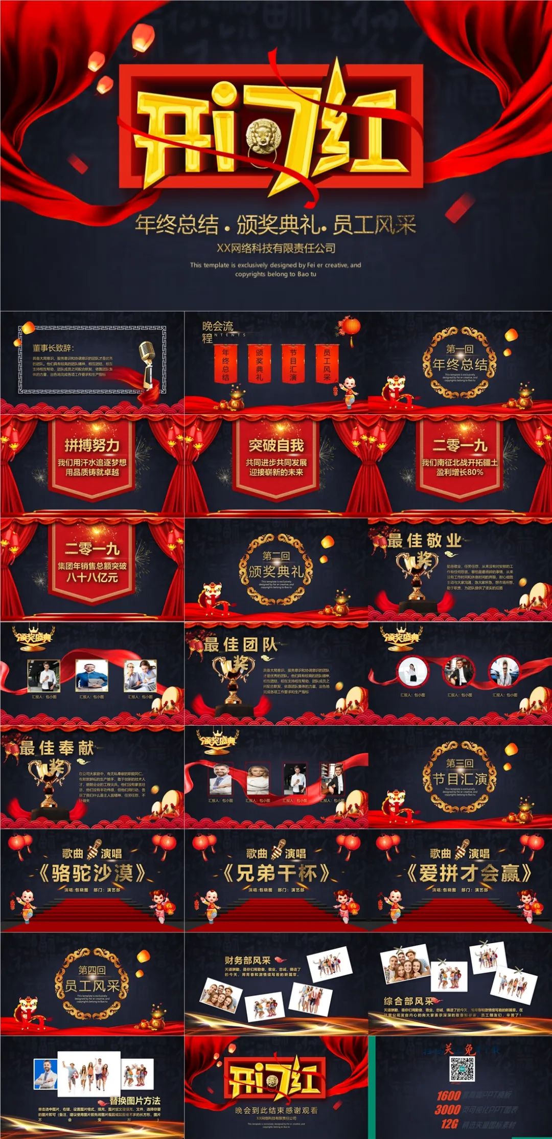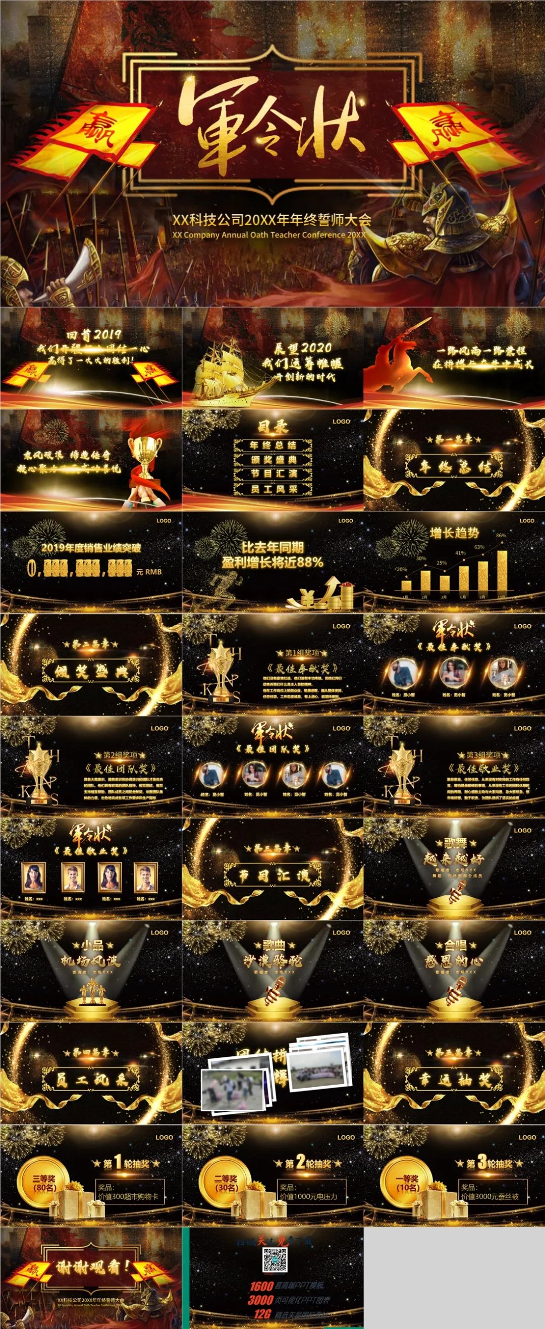 5.今天分享10套开门红年终年会颁奖盛典晚会PPT模板开门红年终誓师大会年会颁奖盛典晚会PPT模板年会颁奖盛典晚会 军令状誓师大会PPT模板年会颁奖盛典晚会年终汇报PPT模板优秀员工年会颁奖盛典晚会PPT模板员工风采年终总结年会颁奖盛典晚会 PPT模板黑金色也是分成不错的色彩选择,红色和金色都是中国的传统色彩