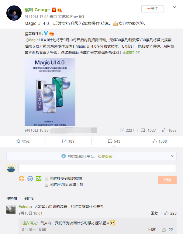 最后:华为鸿蒙OS系统的手机Bate版本,将会在12月18日发布,各位小伙伴们,你们愿意承担一定的风险,自己动手输入Bate测试版系统来体验一番吗?欢迎在评论区中留言讨论,期待你们的精彩评论!