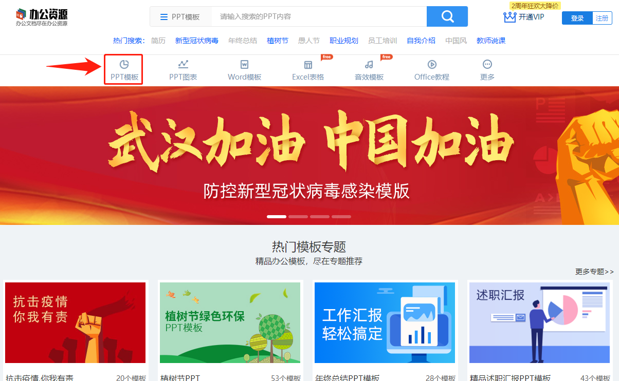 如果我们想要提高的自己的配色能力的话,最直接的方法就是参考各种PPT模板,这时候我们就可以到【办公资源网】上看一看。
