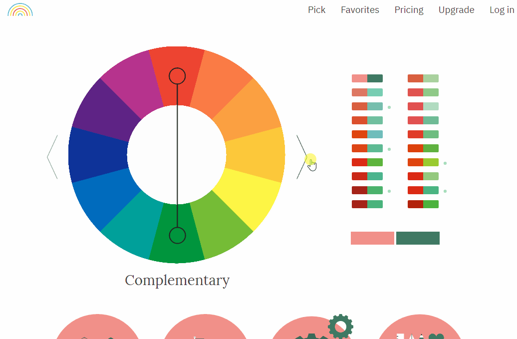 这同样是一个非常优秀的配色网站,在网站中我们可以直接拖动取色杆来改变界面右边的色卡。我们可以在里面选择多种配色方案,也能在网站中直接看到这些颜色的搭配效果,可以说是非常赞了。