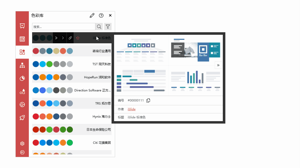 色彩那么多,什么样的色彩适合 PPT 演示?不一样的行业不知该如何配色?可以试试 iSlide “色彩库”、一键统一色彩
