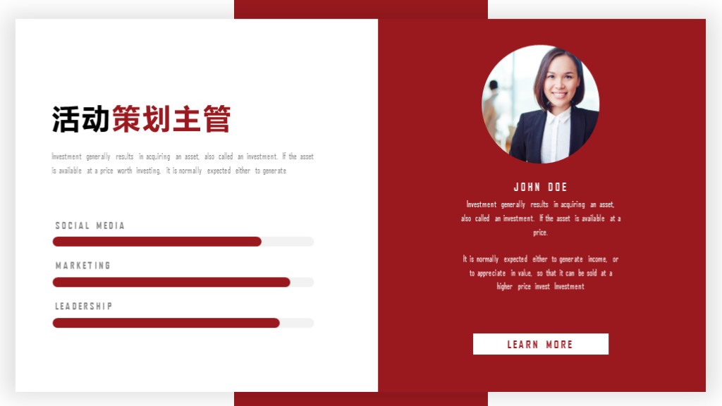3.先来看看精彩的演示视频吧:视频加载中...下面一共是25页!精致沉稳的红色搭配微立体排版风格,祝你汇报更成功!觉得怎么样?下载地址,http://cn.mikecrm.com/3ypshn2或者,请点击左上角我的头像,打开后有个"订阅模板",或者私信回复:下载↓↓↓↓↓↓