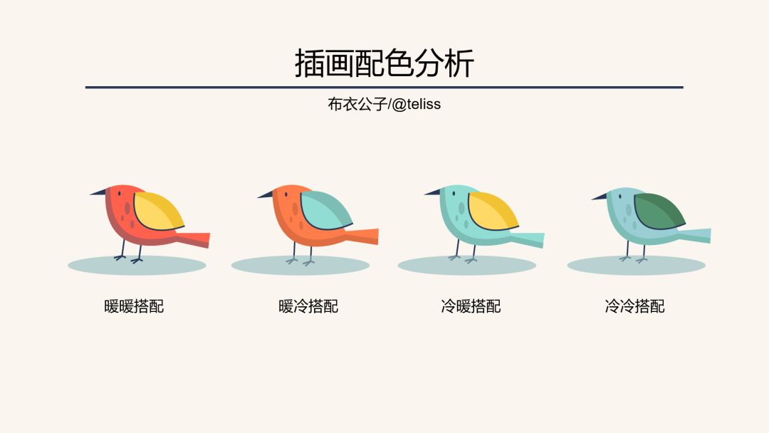 其次,同一个插画可以灵活进行冷暖颜色的搭配,只要用色不超过PPT整体色彩范围就可以了,如下图:
