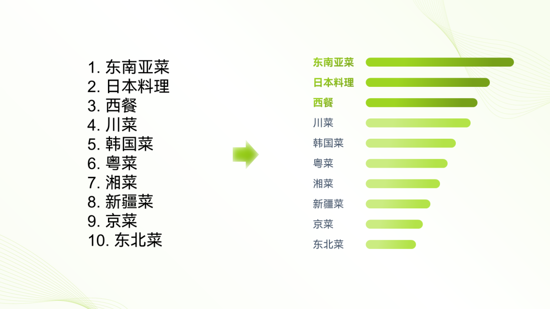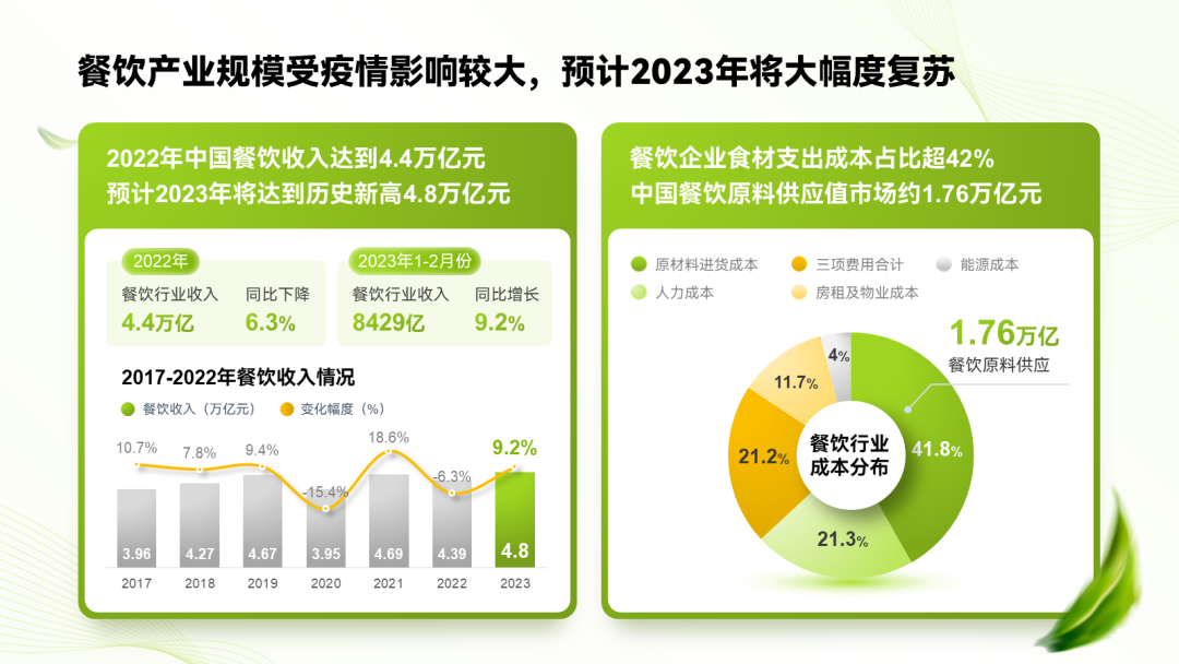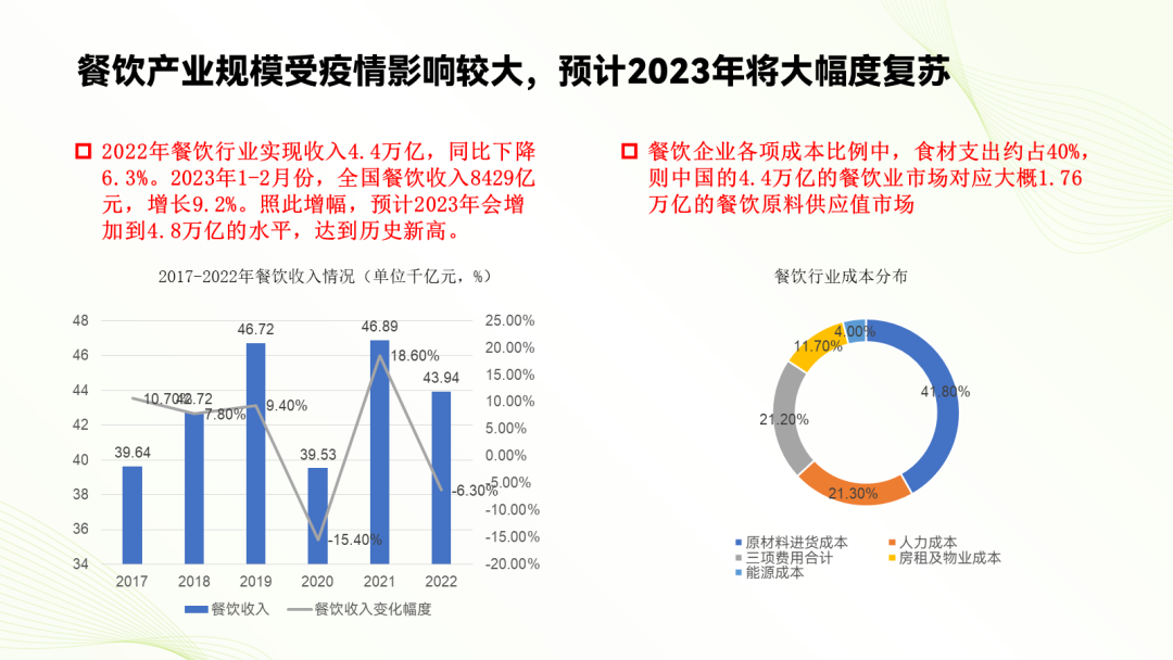 照搬优秀作品的风格,或是根据大众对食品餐饮的第一印象,你就可以确定PPT配色,这里我们选择看着更健康的绿色系: