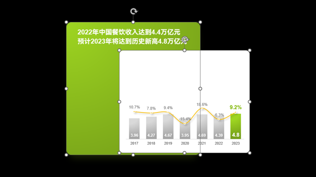 最后,按照图表排版的那个案例,用一个简单的矩形,给左右两个内容模块划分清楚界限: