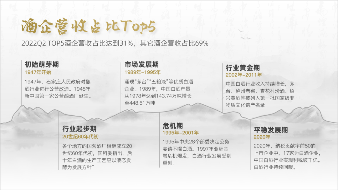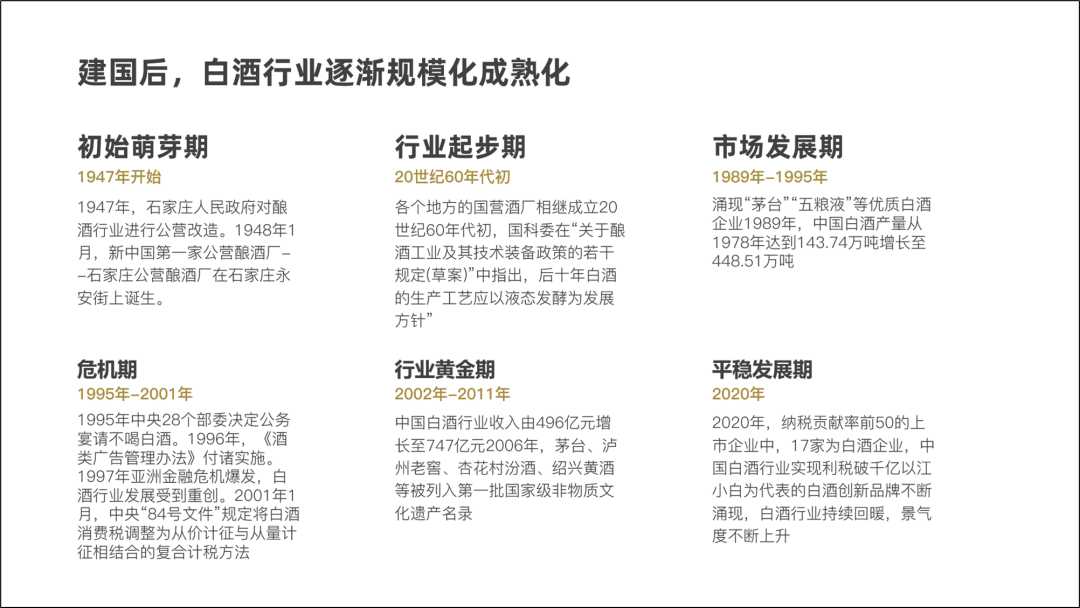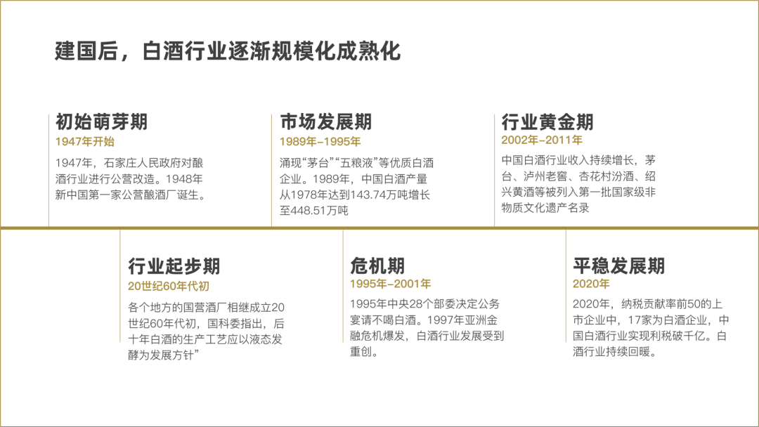 这一页PPT说的是白酒行业发展的阶段,更像是一个时间轴。