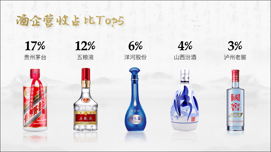 说的是TOP5酒企占比,这里用的是一个饼图。