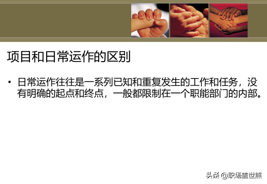 1. 项目管理和日常运作的区别;