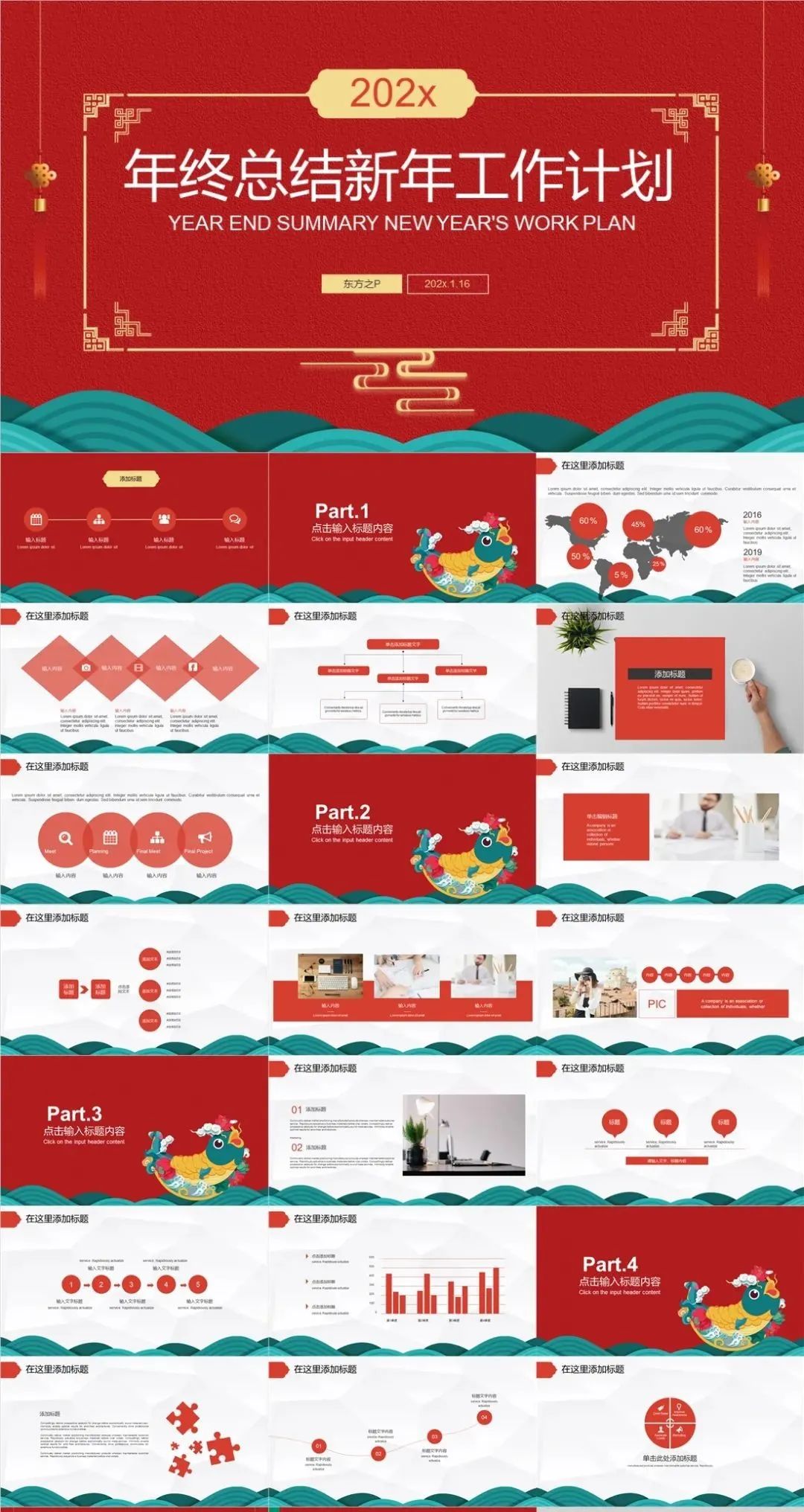 精美实用喜庆红年终总结新年工作计划ppt模板