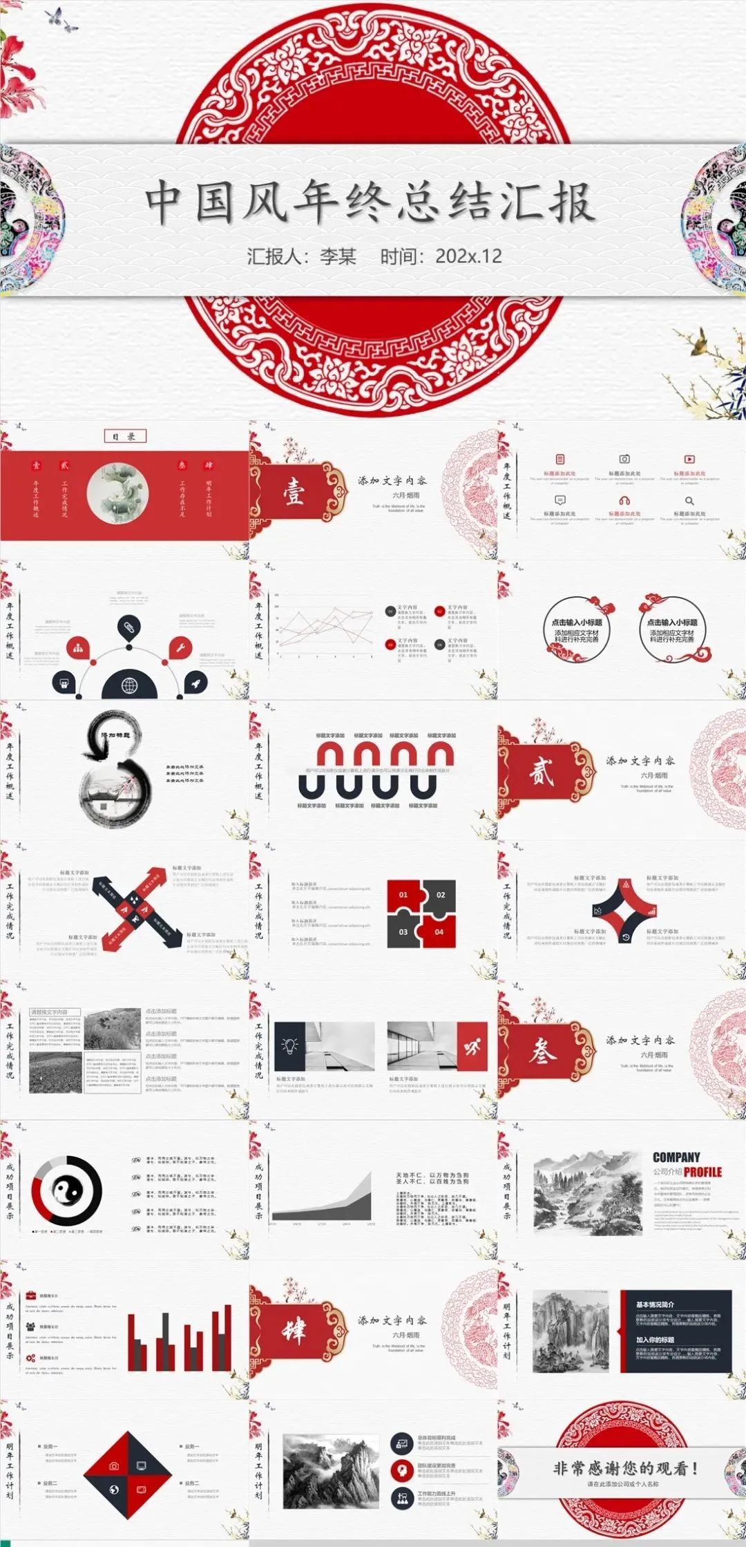 今天分享5套中国风年终总结PPT模板,非常有中国传统的风格,用来做年终计划和总结也是非常不错。