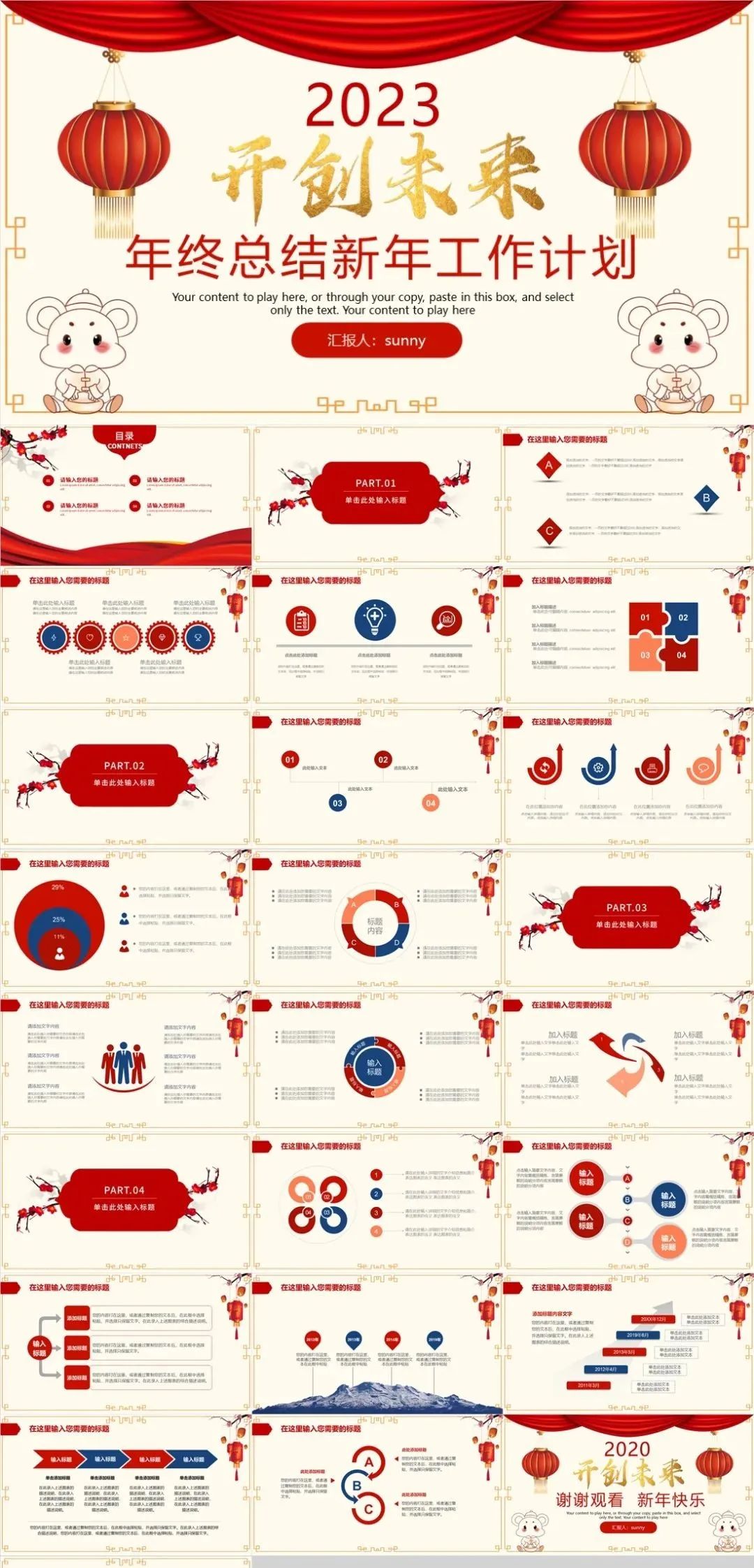 开创未来——喜庆红传统春节风年终总结新年工作计划ppt模板