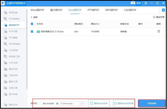 全能PDF转换助手是一款支持多种文档格式互相转换的软件,可以将PDF和图片、word 、excel等进行互相转换,全面满足用户的需求。接下来小编介绍下excel转换成pdf的步骤。操作步骤如下: