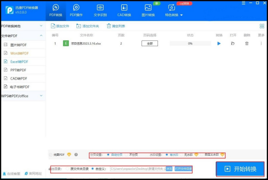 迅捷PDF转换器支持PDF转word 、PPT、excel等功能之间的互相转换,简单好用功能强大。excel转PDF操作如下: