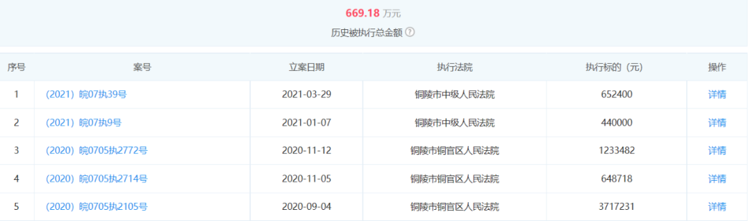 连线出行通过查阅公开数据,自去年9月初奇点汽车就分别为铜陵市铜官区人民法院和铜陵市中级人民法院列为被执行人,截至今年3月底,已有5次被执行,历史被执行总金额高达669.18万元。