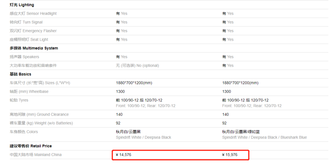 先不说一款两轮电动车的预售价格竟然被提到15976元,已远超行业内同类型产品的价格;在智能化方面,虽然也支持OTA升级和车辆语音控制等功能,但相比之下,能做到同样功能的小牛和九号电动车却比其价格低廉,可想而知消费者在面对同样功能的产品时,极大可能会选择更加具有性价比的产品。